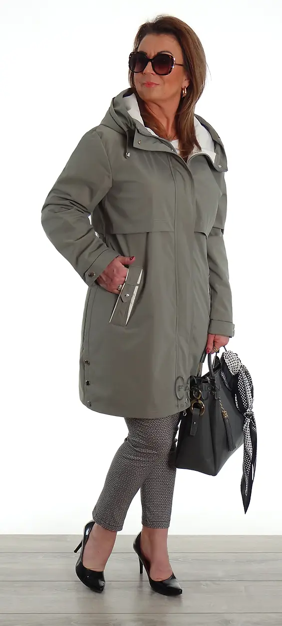 Elegancki przejściowy płaszczyk na podszewce LUXURY zielony
