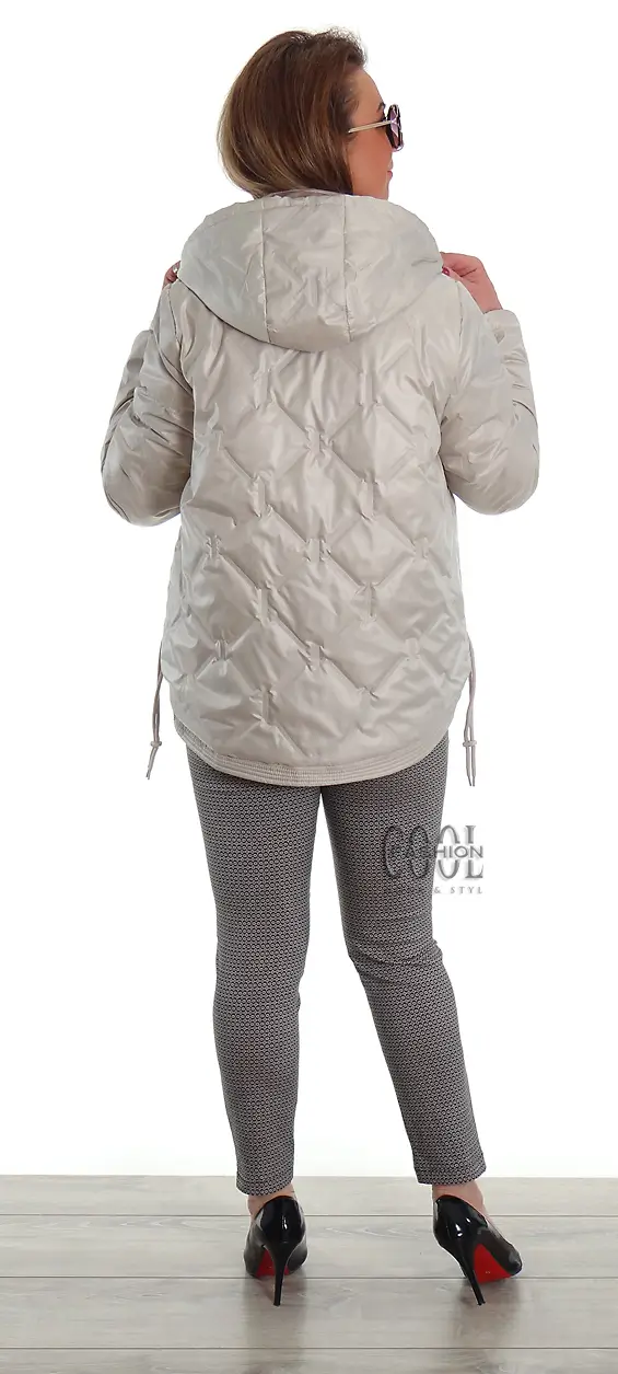Przejściowa lekko taliowana kurtka z odpinanym kapturem. Kurtka zapinana jest na zamek błyskawiczny. Posiada dwie wsuwane kieszenie. W kapturze są troczki ściągające dla wymodelowania kształtu. Tył kurtki jest przedłużany. Po bokach u dołu wcięcia z regulacją wysokości. Posiada kontrastową podszewkę kaptura i kołnierzyka. Lekko ocieplona do wynoszenia na wiosnę oraz jesień.