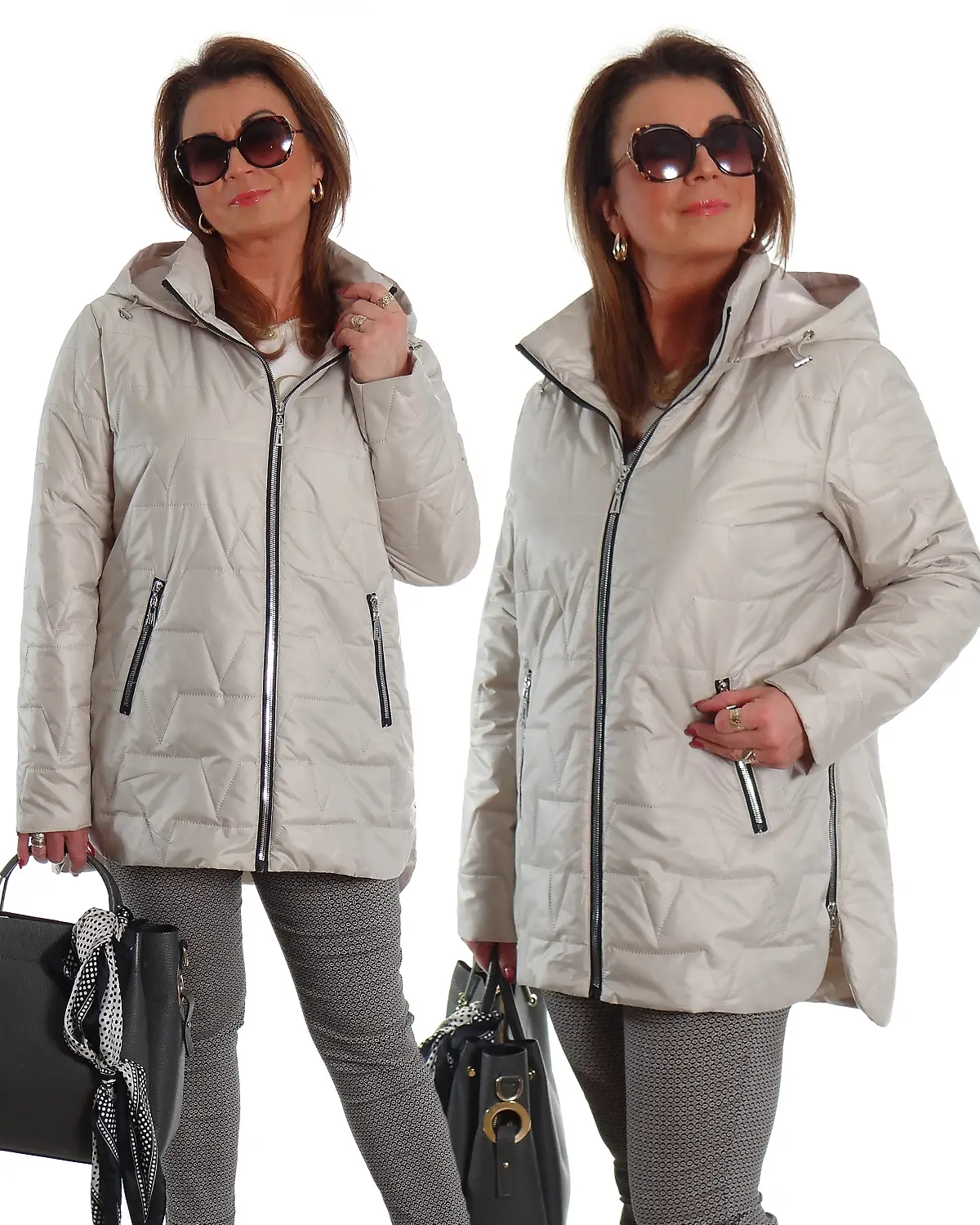 Wiosenna dłuższa kurtka z kapturem INGRID perłowa